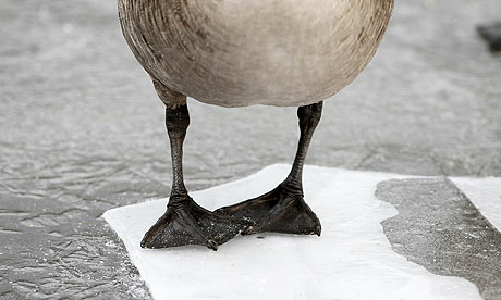 alighting on the snow.